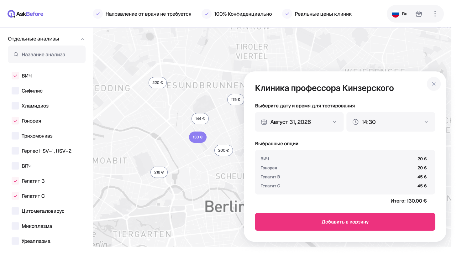 Тестирование стало простым. Найдите клинику, забронируйте онлайн и получите результаты.
