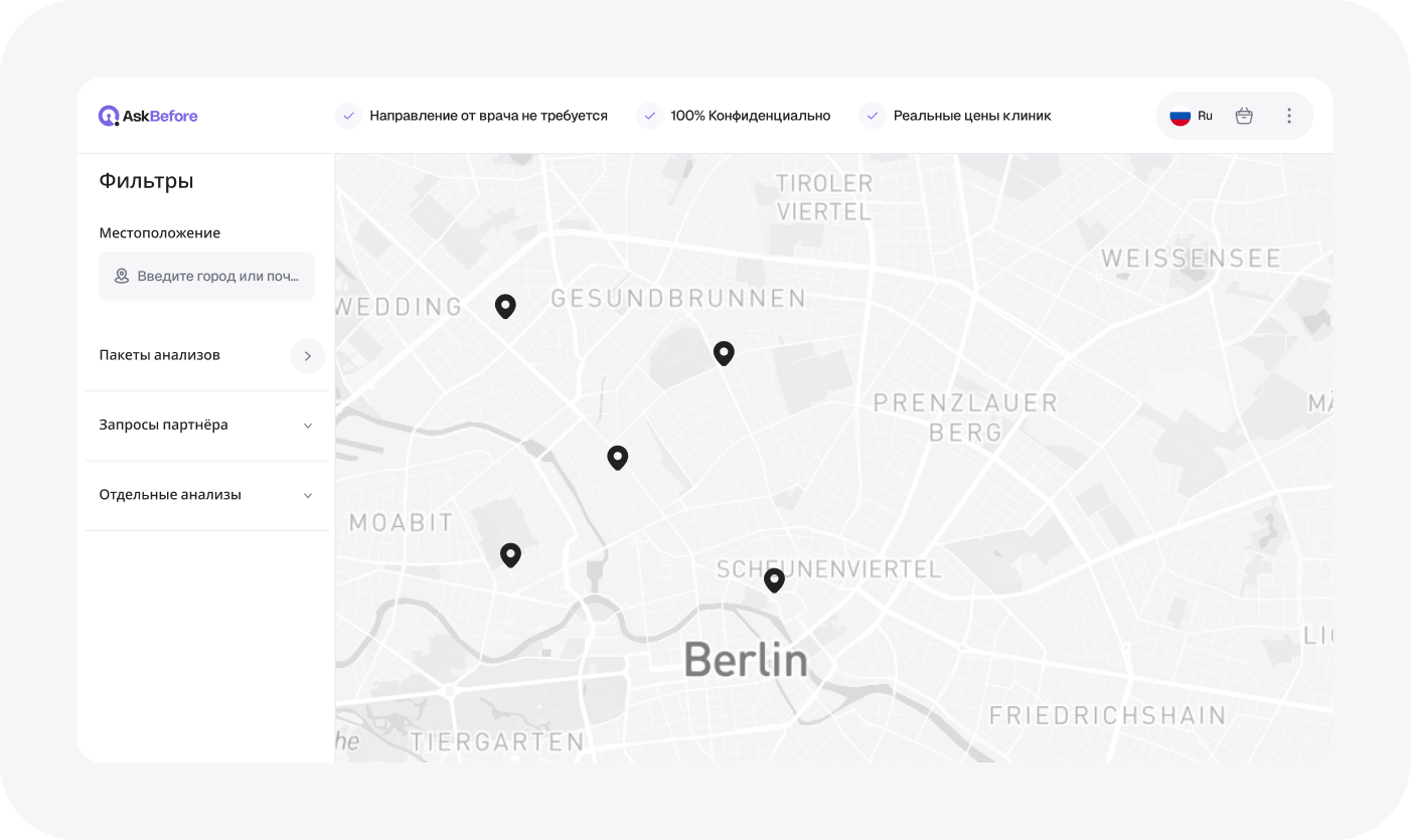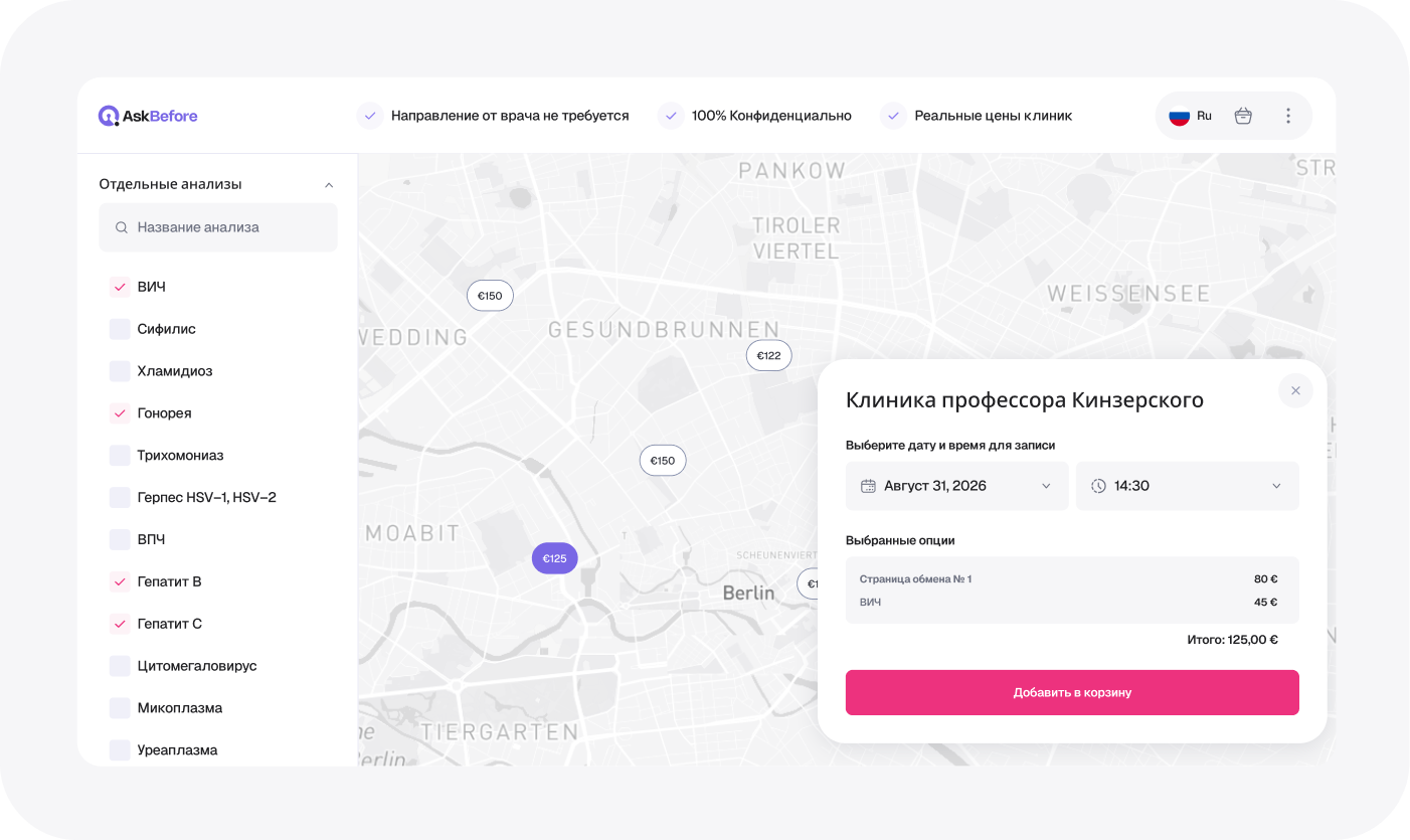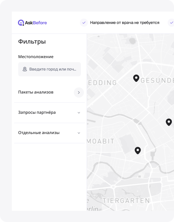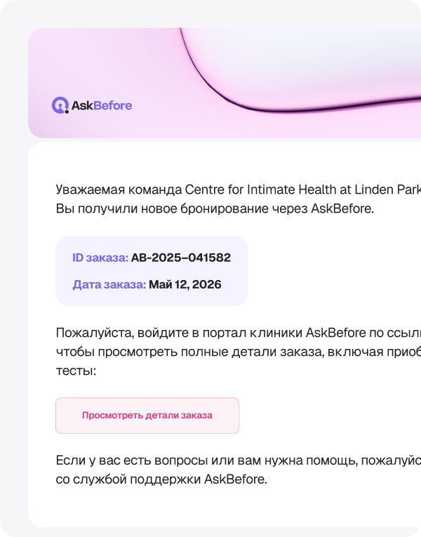 Присоединяйтесь к AskBefore — платформе, где партнёры безопасно и деликатно обмениваются результатами тестов на ИППП и находят клиники для сдачи анализов.