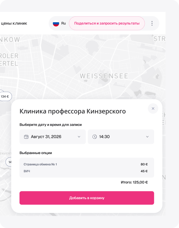 Предлагайте конкурентные цены, чтобы привлекать больше пользователей, или включите прямое бронирование даты и времени — так вашу клинику будет проще выбрать.